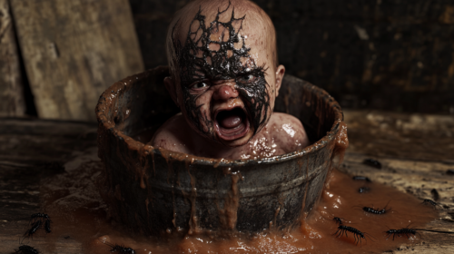 When we think about everything we’ve accomplished since the unfortunate disassembly of Mrs. Hicklebrow, We can’t help but feel a swell of pride. The babies in flowerpots, in clamshells, in rotting fruit—each shoot has been a masterclass in deranged genius. From the millipedes wriggling over screaming infants to Skigglebert the slime demanding we give him another hand-job mid-shoot, every moment was a chaotic triumph. These photos will echo through history, immortalizing our unhinged dedication to the craft.